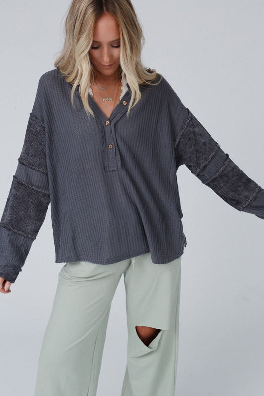 GRAY WAFFLE KNIT PATCH TOP