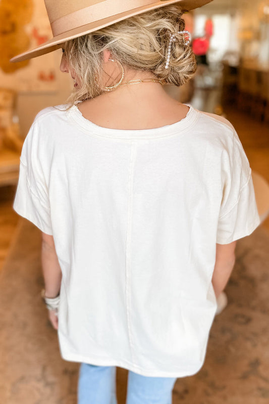 ROLLED SLEEVE RIBBED OVERSIZED TOP