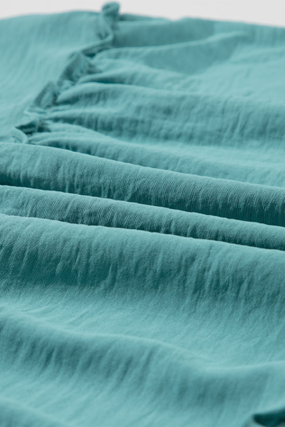 Crafted from lightweight and breathable fabric, this dress promises all-day comfort, allowing you to sway with ease in the gentle breeze. Its flowing silhouette and charming frills show sass, while the midi length adds a touch of vintage-inspired elegance.